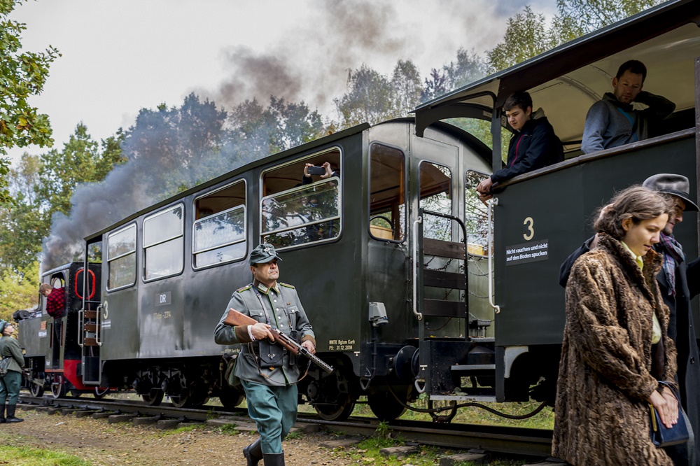 Przejazd zabytkowym, stylizowanym na czasy międzywojenne parowozem “Ryś”, inscenizacja kontroli paszportowej na polsko-niemieckim przejściu granicznym oraz zwiedzanie Izby Tradycji oraz wagonu “Salonki” z 1912 roku.