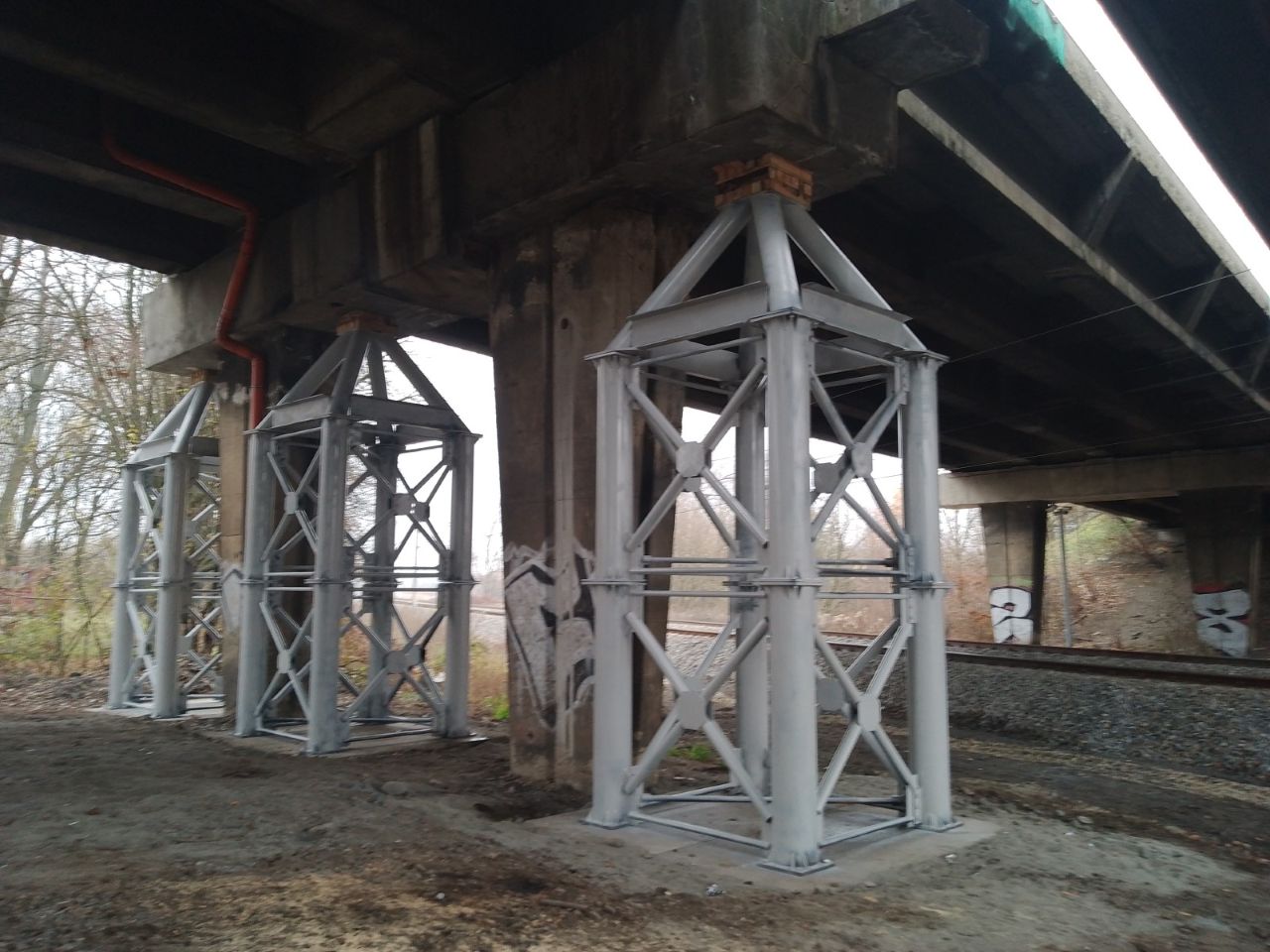 Zakończyły się prace związane ze wzmocnieniem wiaduktu nad ul. Siemianowicką i linią kolejową nr 131. Wykonawca ustawił klatki podpierające przęsła wiaduktu i uzupełnił elementy systemu odwodnienia. Dodatkowa podpora umożliwi prowadzenie ruchu kolejowego i samochodowego pod wiaduktem do czasu jego kompleksowej przebudowy.