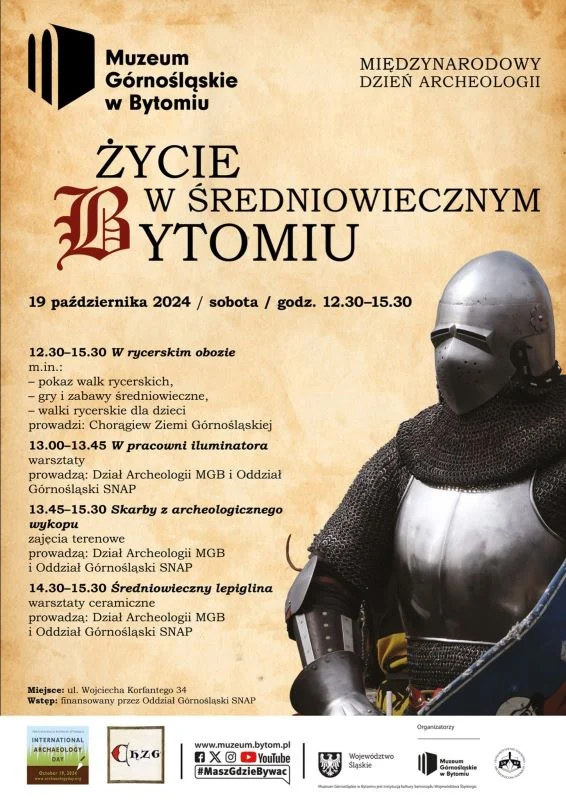Rycerze u miasta bram! Pisanie gęsim piórem, wykop archeologiczny i wykopaliska, średniowieczne obozowisko i pokaz walk rycerskich, warsztaty lepienia z gliny, gry i zabawy z epoki. Życie w średniowiecznym Bytomiu to motyw przewodni Międzynarodowego Dnia Archeologii, które w naszym mieście odbędzie się w sobotę 19 października w Muzeum Górnośląskim.