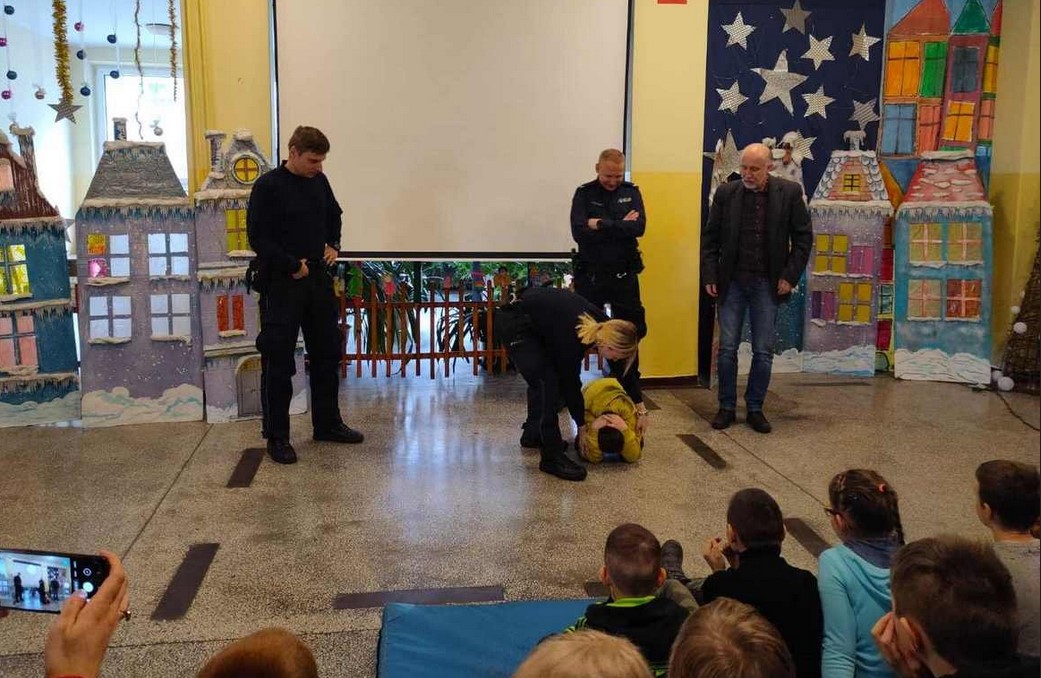 Przestrzegli przed wchodzeniem na lód oraz o ostrożności podczas zabaw ze śnieżkami. Dzieci nauczyły się również pozycji, która chroni przed agresywnym psem. Uczniowie z ogromnym zaangażowaniem przysłuchiwali się mundurowym oraz zadawali liczne pytania.