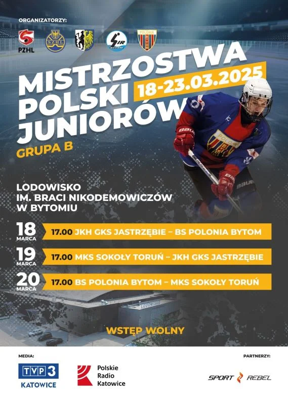 W dniach 18-20 marca 2025 roku na Lodowisku im. Braci Nikodemowiczów w Bytomiu odbędą się Mistrzostwa Polski Juniorów w hokeju na lodzie. Polonia Bytom powalczy o awans do półfinału, rywalizując z drużynami JKH GKS Jastrzębie i MKS Sokoły Toruń. Wstęp na wszystkie mecze jest bezpłatny.