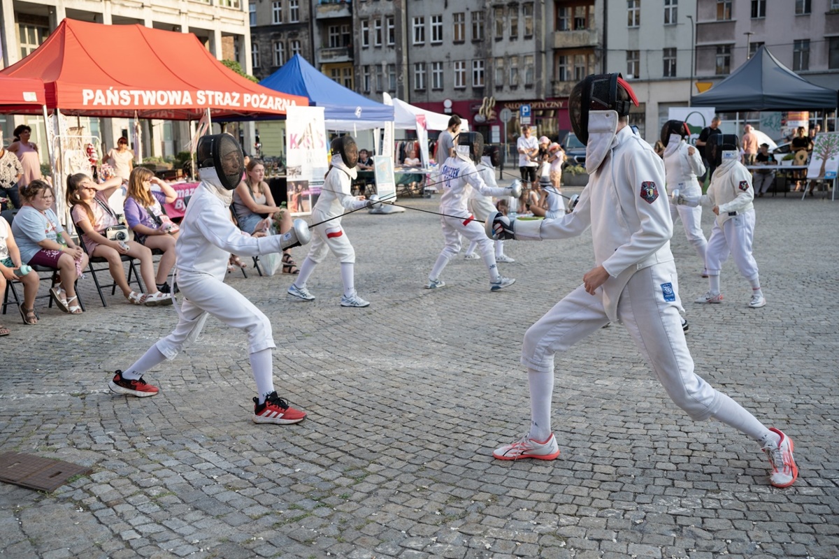 W programie były również warsztaty, pokazy artystyczne i sportowe. Chętni wzięli udział w dyskusjach i zajęciach plastycznych, a odważni na placu Hiolskiego spróbowali swoich sił we wspinaczce. Można było też zagrać w gry razem z harcerzami z Hufca ZHP w Bytomiu. Uczestnicy zasiedli też do wspólnej lektury w ramach Narodowego Czytania 2024. Tegoroczną lekturą był „Kordian” Juliusza Słowackiego. Finałowym wydarzeniem na placu Sobieskiego był znany już z poprzedniej edycji tytułowy “Fajer”, czyli ognisty taniec!
