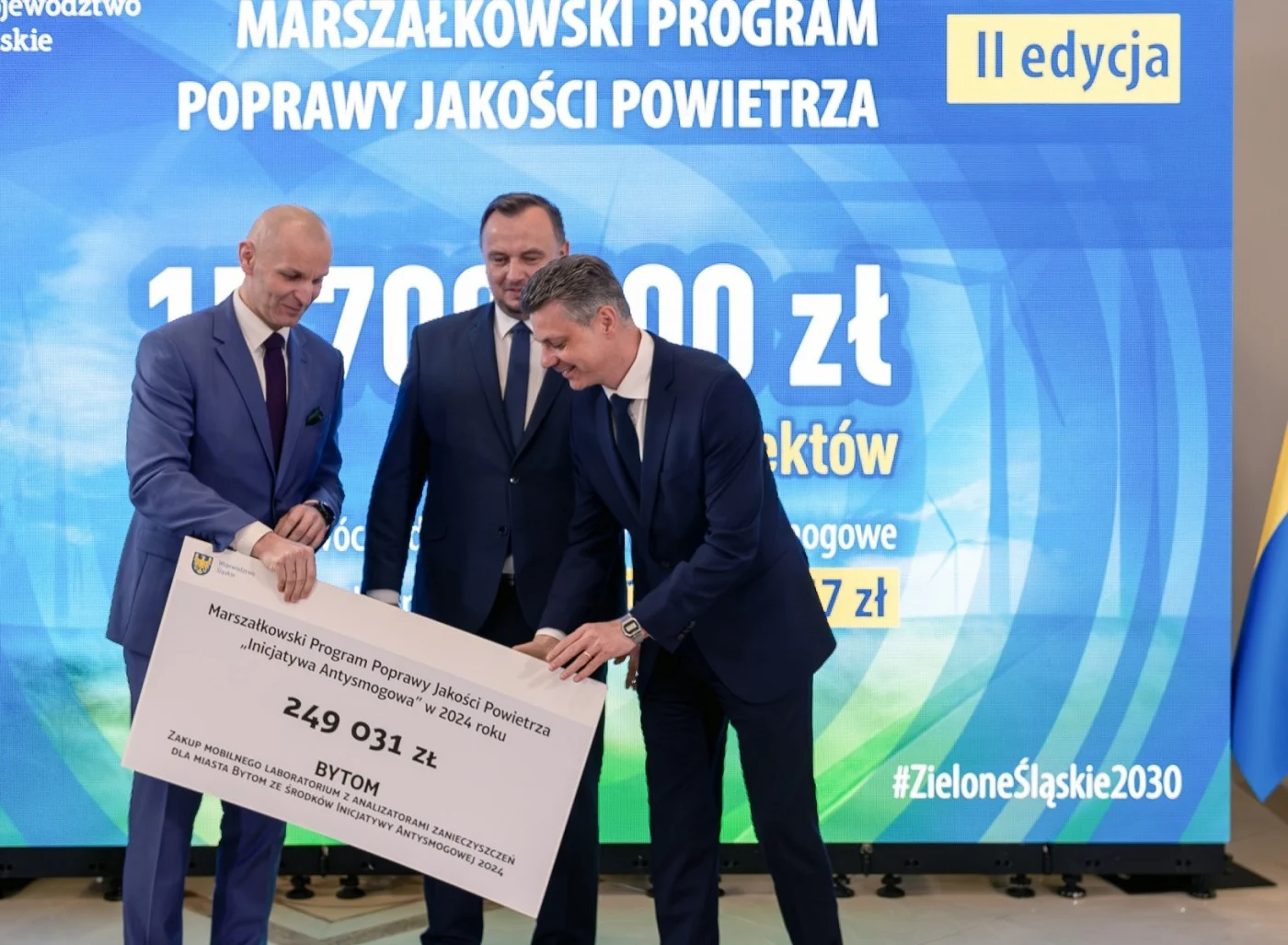 W środę, 3 kwietnia w Urzędzie Marszałkowskim Województwa Śląskiego odbyło się spotkanie, podczas którego prezydent Mariusz Wołosz oraz przedstawiciele innych śląskich miast odebrali symboliczne czeki na realizację proekologicznych działań.