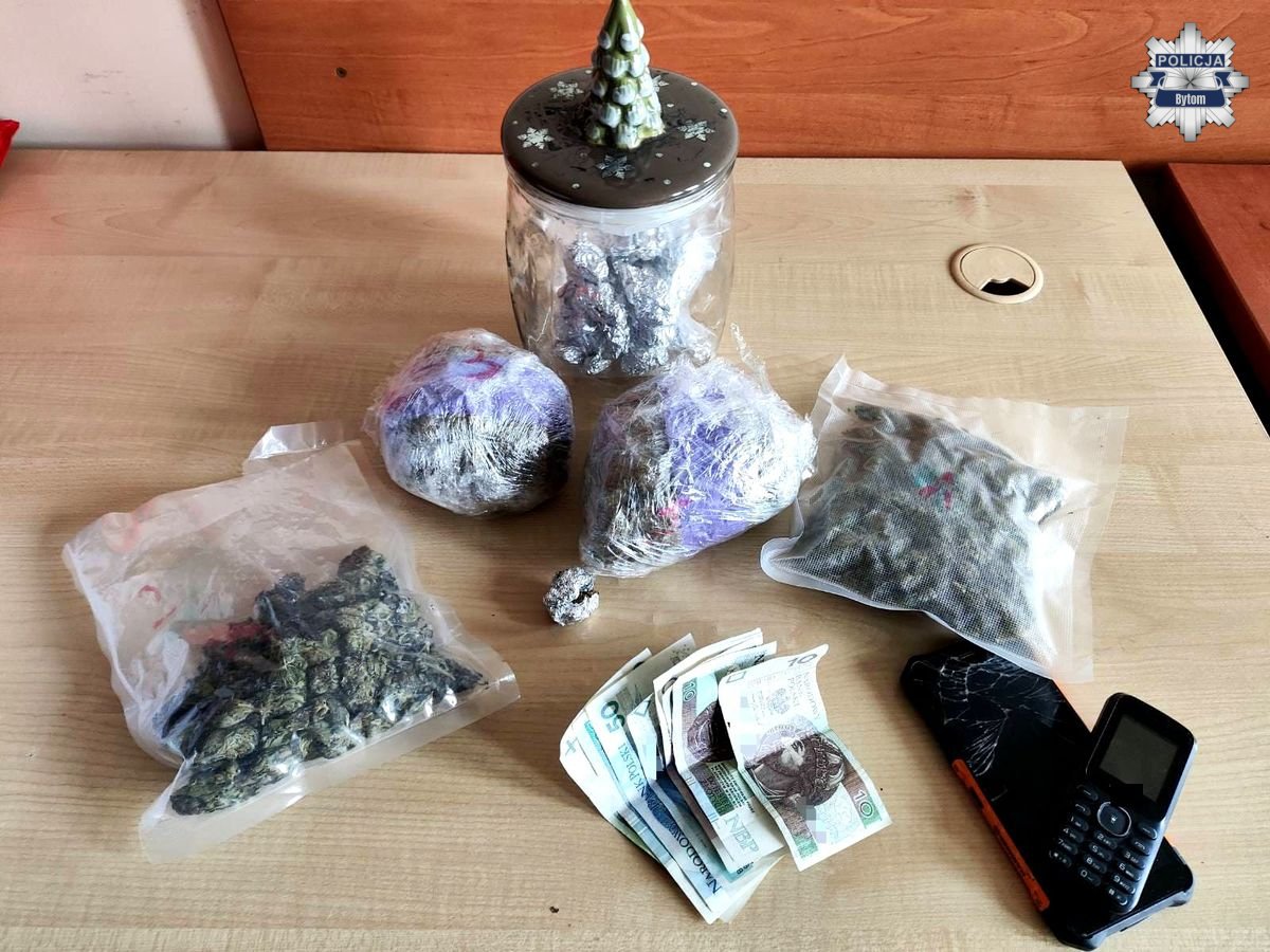 Nie mylili się. Na miejscu zauważyli wychodzącego z mieszkania 27-latka. Przeszukanie mieszkania oraz pomieszczenia znajdującego się na klatce schodowej potwierdziło przypuszczenia policjantów. Stróże prawa znaleźli szklany słoik, worek płócienny oraz kilkanaście sztuk zwitków folii aluminiowej z suszem roślinnym. Wstępne testy wykazały, że to marihuana o wadze prawie pół kilograma. Zabezpieczone przez policjantów środki odurzające trafiły do policyjnego depozytu, a zatrzymany 27-letni mieszkaniec Bytomia do policyjnego aresztu.