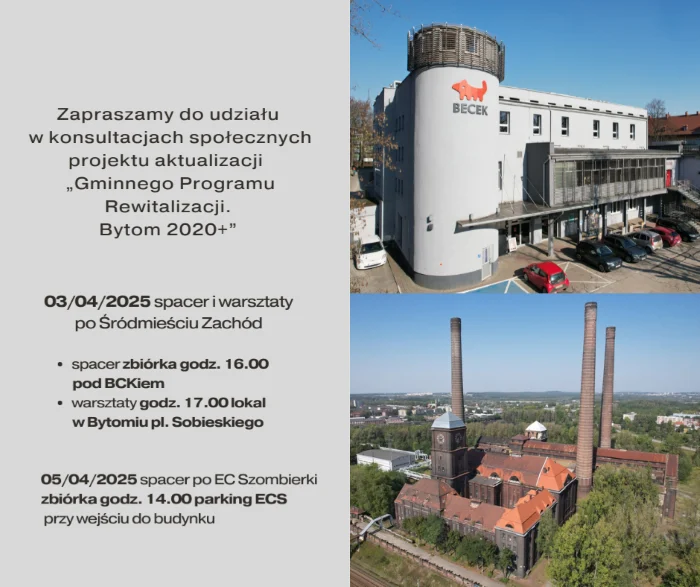 Do 18 kwietnia potrwają konsultacje społeczne związane z projektem aktualizacji „Gminnego Programu Rewitalizacji. Bytom 2020+”. W ramach konsultacji zaplanowano spacery oraz debatę z udziałem ekspertów. Kilka spacerów już za nami, jednak 3 i 5 kwietnia zapraszamy jeszcze na dwa ostatnie spacery po Śródmieściu oraz Szombierkach.