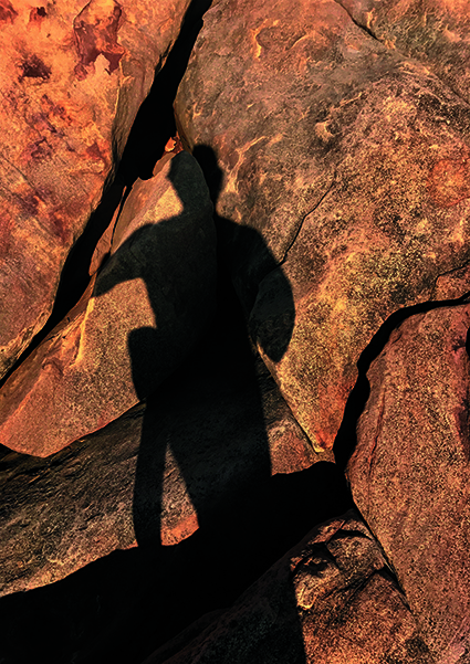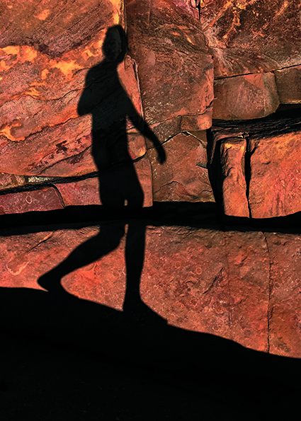 W lipcu 2017 roku, będąc na wakacjach wzachodniej części kanadyjskiego półwyspu Cape Breton, spędzałem dużo czasu chodząc po skalistych klifach wybrzeża. Pewnego dnia, spacerując o zachodzie słońca, zobaczyłem na skałach swój cień układający się w zaskakujący sposób. Jego kształty rzucone na pofałdowane powierzchnie, ustawione w różnych planach i pod różnymi kątami przybierały dynamiczne i intrygujące formy. Instynktownie zacząłem te cienie fotografować. Wieczorami przeglądając zdjęcia uświadomiłem sobie, że takie właśnie cienie mogli oglądać pierwotni ludzie żyjący w skalnych jaskiniach. Większość z nas zna swój cień rzucany na płaskie powierzchnie poziome lub pionowe. Nasi przodkowie widzieli inne kształty, co formułowało ich poczucie estetyczne. Często spotykamy się z tzw. sztuką prymitywną afrykańskich czy azjatyckich masek i rzeźb. Widzimy w nich zniekształcenia nieodpowiadające realistycznym wizerunkom naszej fizjonomii. Estetycznie są one zaskakująco proste i współczesne. Jako artysta ciągle poszukuję form, które mnie intrygują swoją niepowtarzalnością, i to właśnie wydarzyło się latem 2017 roku na Cape Breton.