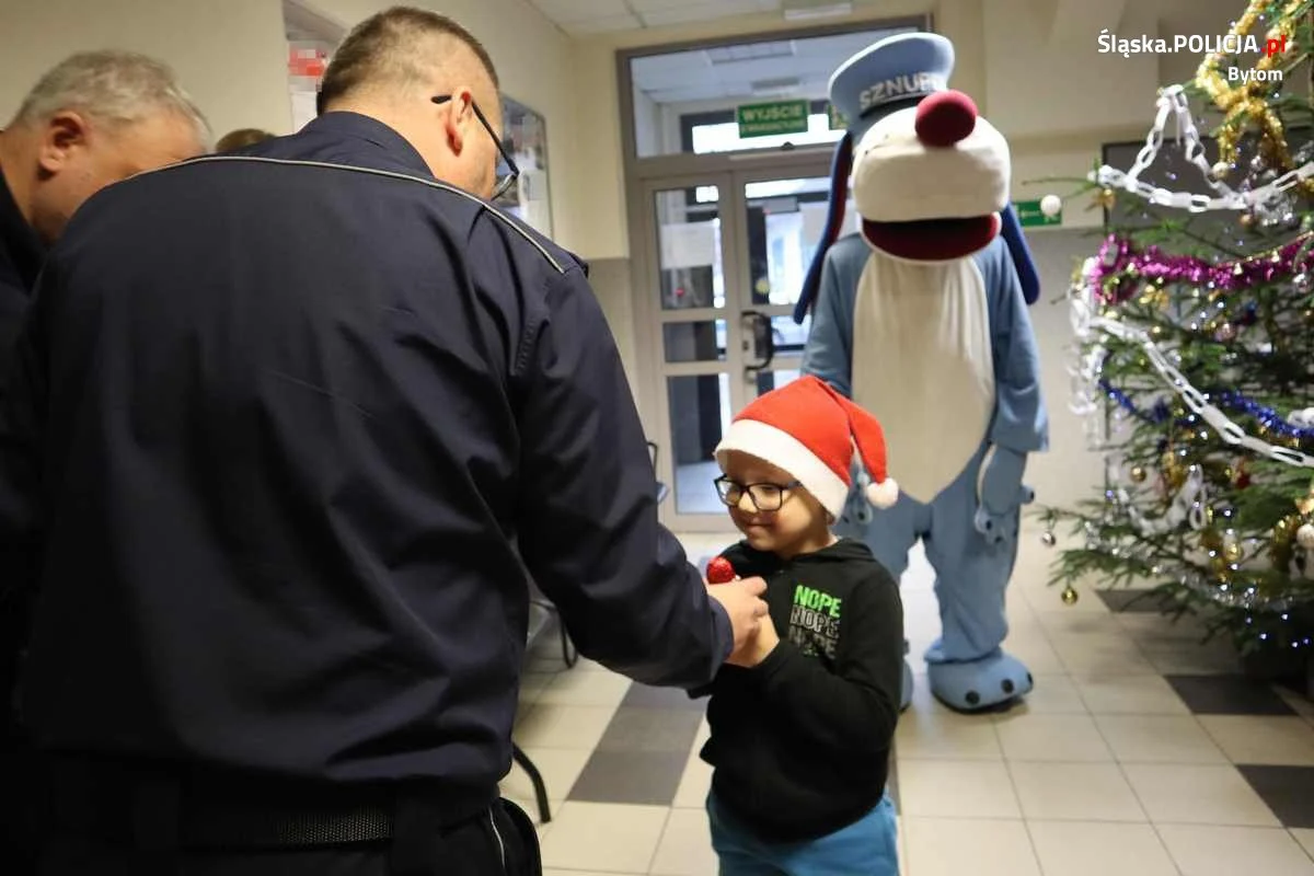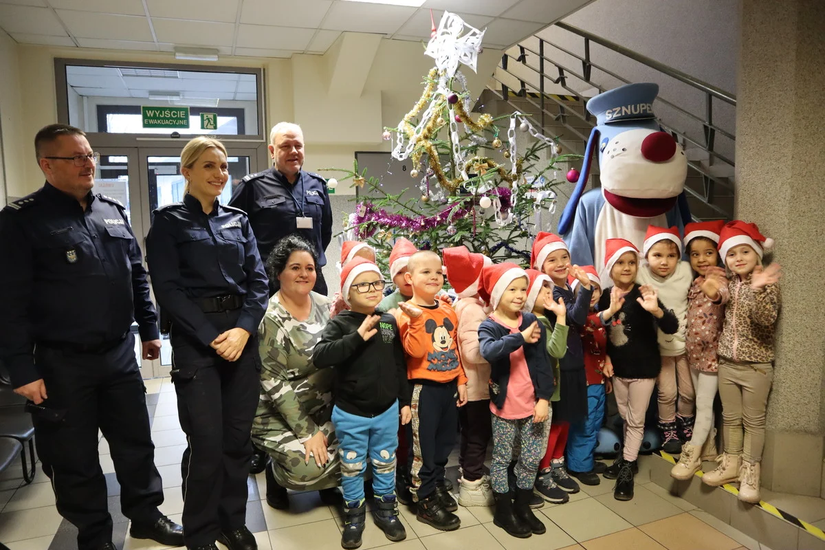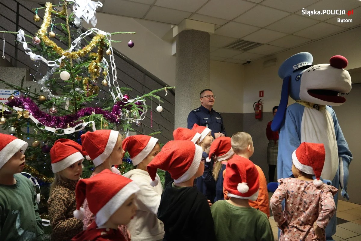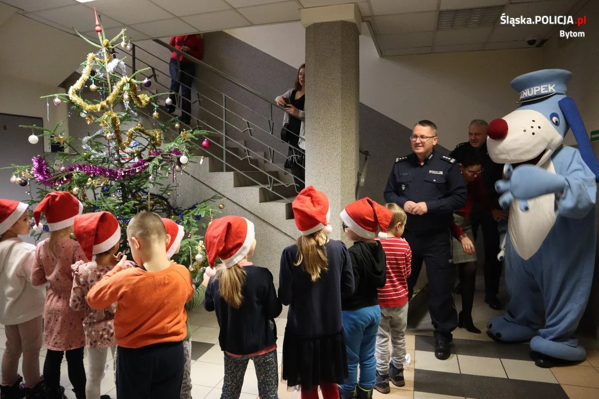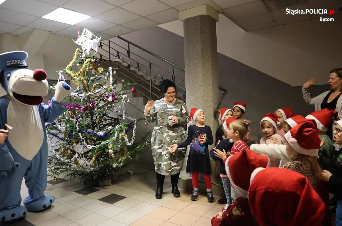 Dzisiaj, na zaproszenie Komendanta Miejskiego Policji w Bytomiu inspektora Andrzeja Brzozowskiego, w komendzie gościły dzieci z przedszkola przy ulicy Czarnieckiego. Przedszkolaki, wspólnie z Komendantem i jego zastępcą, ozdobiły „policyjną choinkę” i przypomniały sobie zasady bezpiecznego zachowania. Niespodzianką dla najmłodszych okazał się pies „Sznupek” – maskotka śląskiej Policji.