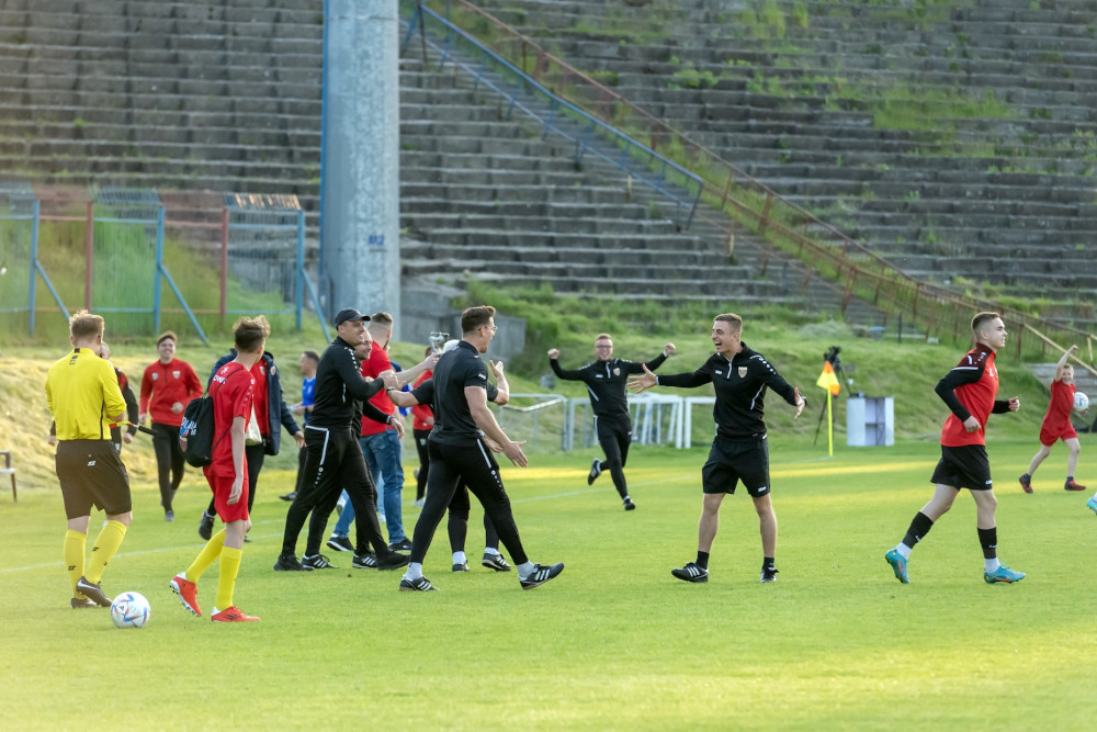 Do końca sezonu pozostały trzy kolejki i już nikt nie jest w stanie zagrozić naszej drużynie w awansie od wyższej ligi. Dzięki doskonałej postawie i ciężkiej pracy przez cały sezon piłkarzy oraz sztabu szkoleniowego po ostatnim gwizdku niebiesko-czerwoni mogli przystąpić, wraz z kibicami do świętowania awansu.