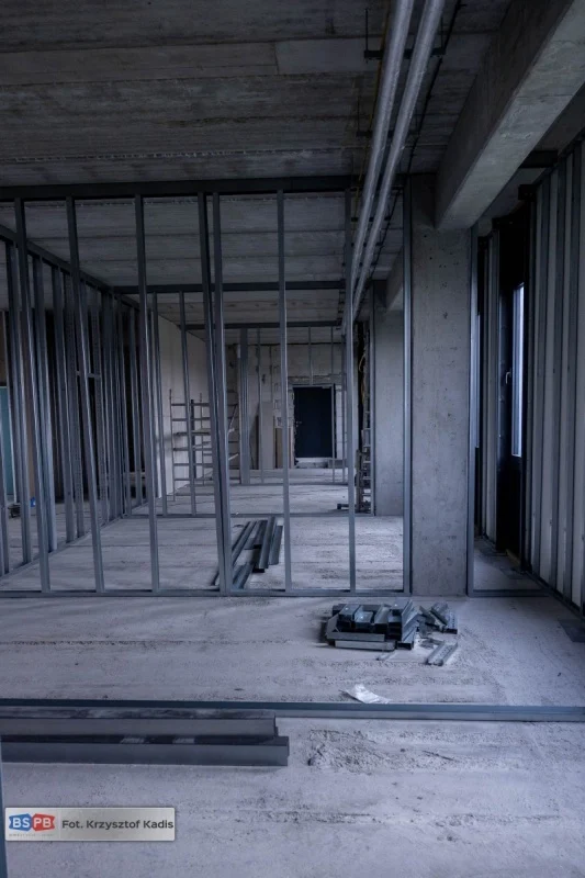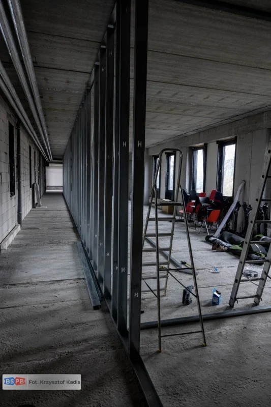 Z kolei na drugim piętrze trwa instalacja ścian działowych z płyt gipsowo-kartonowych, gdzie siedzibę będzie miała administracja spółki Bytomski Sport. Cały czas trwają prace projektowe związane z trybuną zachodnią oraz instalacjami w budynku administracyjno-socjalnym.