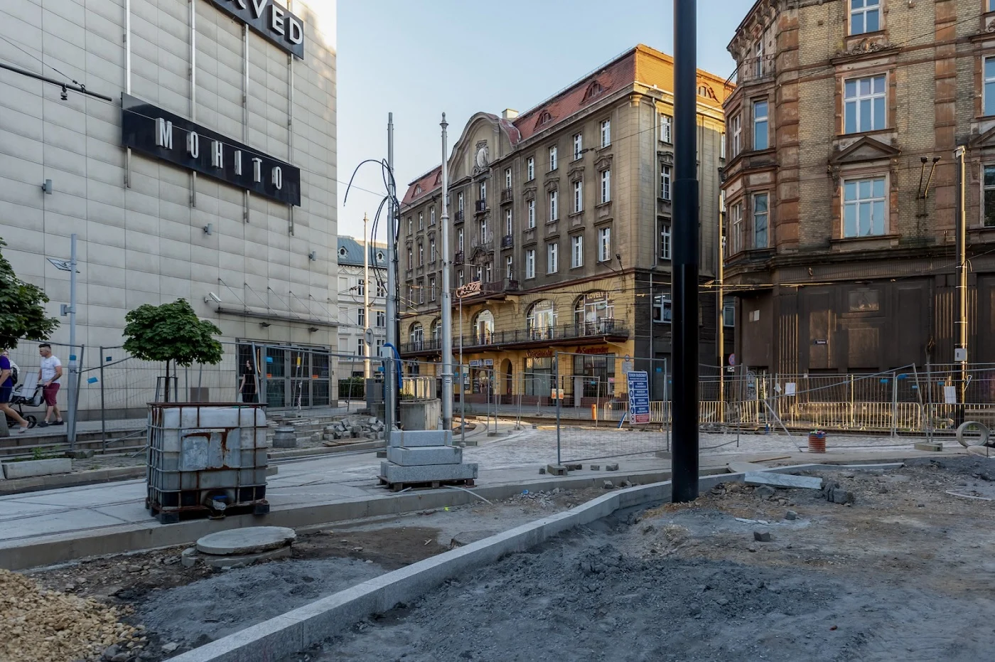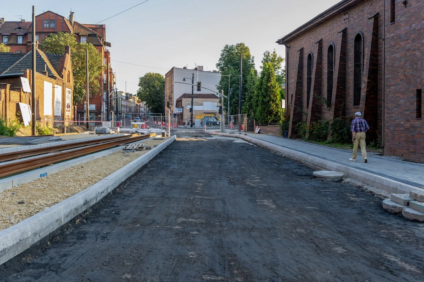 Z kolei na odcinku od ul. Piłsudskiego do skrzyżowania z ul. Wrocławskiej trwają jeszcze prace związane z przygotowaniem konstrukcji pod budowę chodnika i peronu, montażem krawężników i wjazdów na posesję, zabudową torowiska tramwajowego, demontażem starych słupów trakcyjnych oraz przebudową skrzyżowania ul. Wrocławskiej i Piekarskiej. W rejonie Sądu Rejonowego wykonawca rozpoczął już zabudowę kostki kamiennej między rozjazdami tramwajowymi.