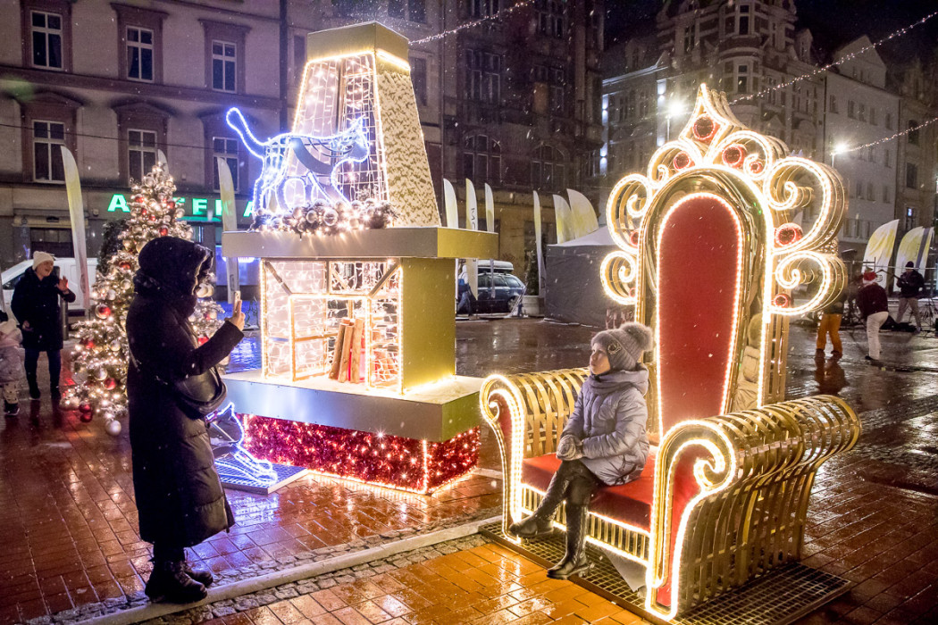 Świąteczna piramida z grzanym miodem i gorącą czekoladą, aromatyczne stoiska z pachnące piernikiem i swojskimi wędlinami oraz pierogami, a także domki z rękodziełem. To tylko część atrakcji, jakie czekają na odwiedzających na bytomskim rynku. Obok tradycyjnej choinki, na rynku stanie karuzela i świetlny labirynt, chata góralska, kilka siedzisk, na których każdy będzie mógł wykonać świąteczne selfie, tron Mikołaja, a nawet złoty fiat 126p z choinką na dachu.