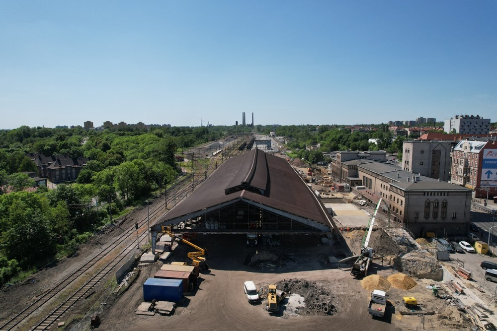 Pod koniec maja rozpoczęły się także roboty związane z modernizacją hali peronowej dworca PKP przy pl. Wolskiego. Wymienione zgodnie z dokumentacją projektową uzgodnioną na etapie pozwolenia na budowę z Wojewódzkim Konserwatorem Zabytków zostanie całe pokrycie dachoweo powierzchni około 5600 mkw. i zastąpione dachem z blachy cynkowo-tytanowej wraz z przeszkleniami na świetliku oraz ścianach szczytowych hali peronowej.