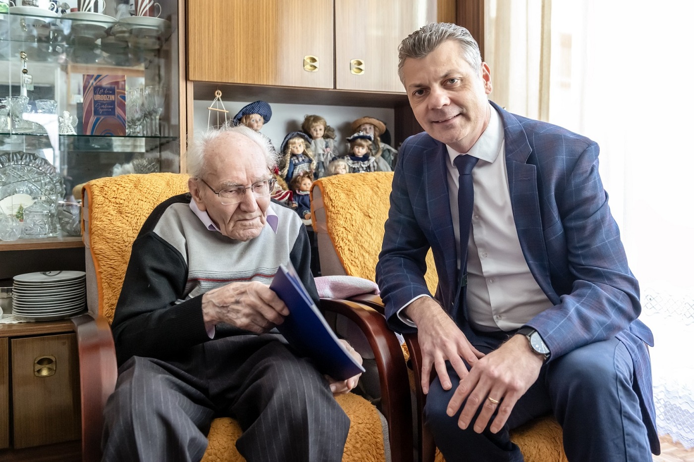 Jubileusz stulecia urodzin obchodził w czwartek (30 listopada) pan Antoni Tomczyk. Z tej okazji prezydent Mariusz Wołosz odwiedził dostojnego jubilata z bukietem kwiatów i życzeniami. Nie było to ich pierwsze spotkanie, gdyż rok temu prezydent odwiedził państwa Tomczyków z okazji 70. rocznicy ich ślubu.