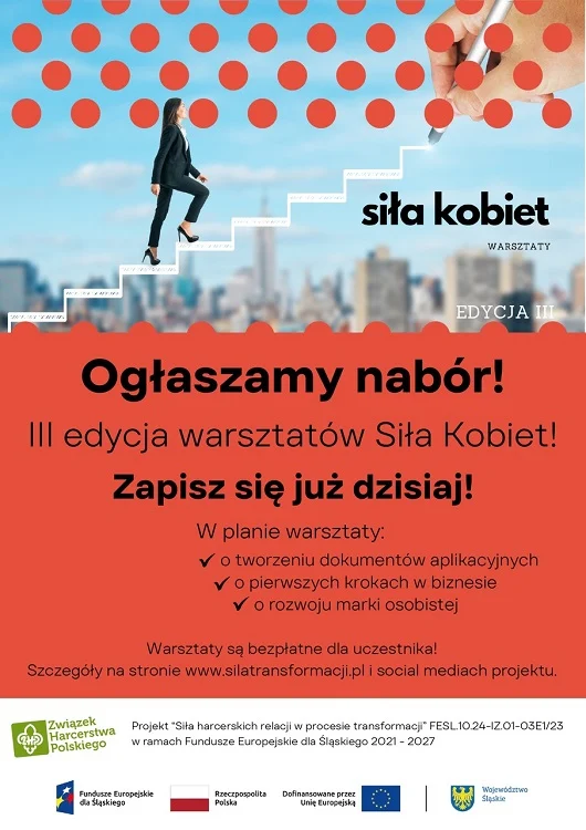 Bytom ponownie stawia na rozwój kobiet! W ramach projektu „Siła Harcerskich Relacji w Procesie Transformacji” rusza III edycja warsztatów „Siła Kobiet”. Program ten skierowany jest do wszystkich kobiet, które pragną rozwijać swoje umiejętności zawodowe, zdobywać nowe kompetencje oraz budować swoją markę osobistą. To idealna okazja, by zainwestować w siebie, zdobyć motywację i nauczyć się nowoczesnych metod poszukiwania pracy.