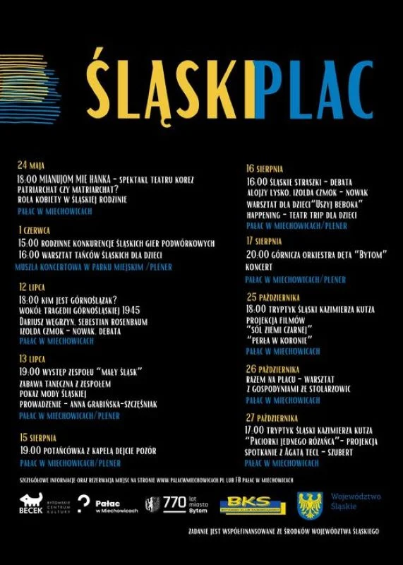 Wydarzenie Śląski Plac organizowane jest we współpracy z Bytomskim Klubem Samorządowym dzięki dofinansowaniu z budżetu Województwa Śląskiego oraz Miasta Bytom.