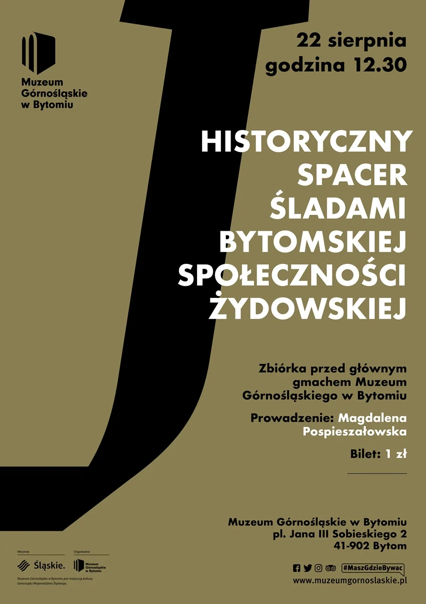 Spacer śladami bytomskiej społeczności żydowskiej odbędzie się w niedzielę 22 sierpnia br. Początek o godzinie 12.30. Zbiórka przed gmachem głównym bytomskiego muzeum. Bilet za 1 zł do kupienia kasie biletowej MGB budynku na Placu Sobieskiego.