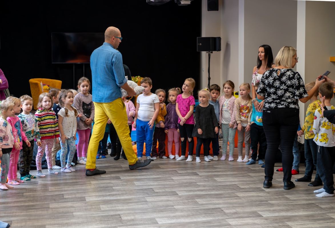 W południe starsze dzieci wzięły udział w baśniowym stand-upie prowadzonym przez Mateusza „Gadającego” Świstaka. Spotkanie przeniosło uczestników w świat opowieści z różnych stron świata, a niezwykle żywa narracja stanowiła nie tylko rozrywkę, ale i edukację – pokazała, jak fascynujące mogą być baśnie.