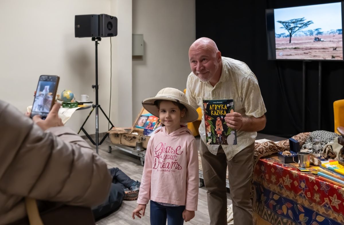 Wieczorem miłośnicy podróży spotkali się z Łukaszem Wierzbickim, autorem książki „Afryka Kazika”. Sala wypełniła się emocjami, gdy pisarz opowiadał o mrożących krew w żyłach przygodach podróżnika Kazimierza Nowaka, który przemierzał Afrykę na rowerze.