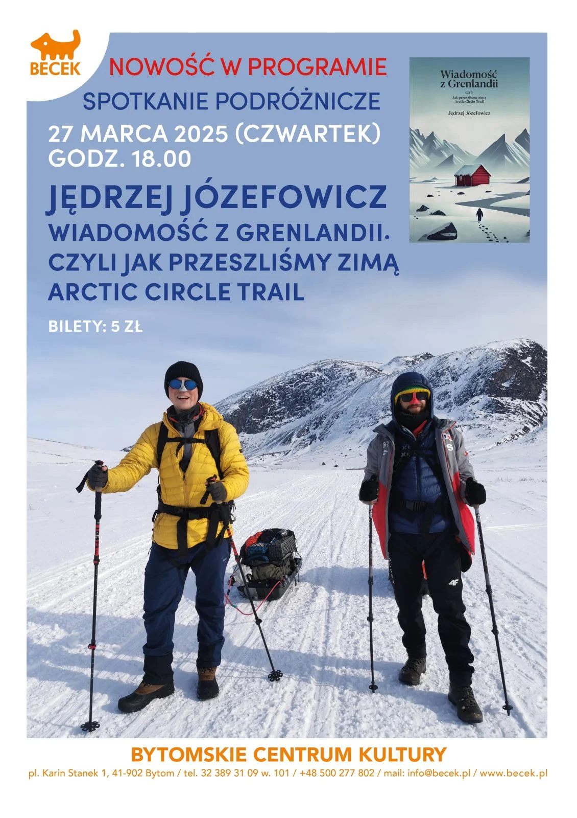 W 2023 roku Jędrzej Józefowicz oraz Piotr Kilian wyruszyli z Kopenhagi na Grenlandię, by zmierzyć się z legendarnym Arctic Circle Trail w jego najtrudniejszej, zimowej odsłonie. Podczas spotkania podróżnik opowie o wielu ekstremalnych wyzwaniach, jakie napotkali.