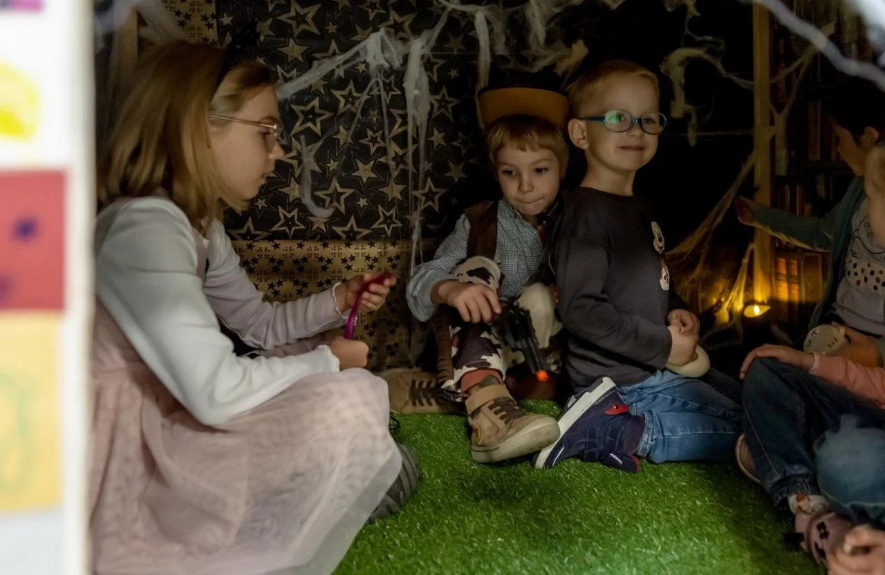Nie zabrakło też tańców oraz zabaw ruchowych, podczas których dzieci i prowadzący zamieniali się w postacie z filmów i książek z nutką grozy.
