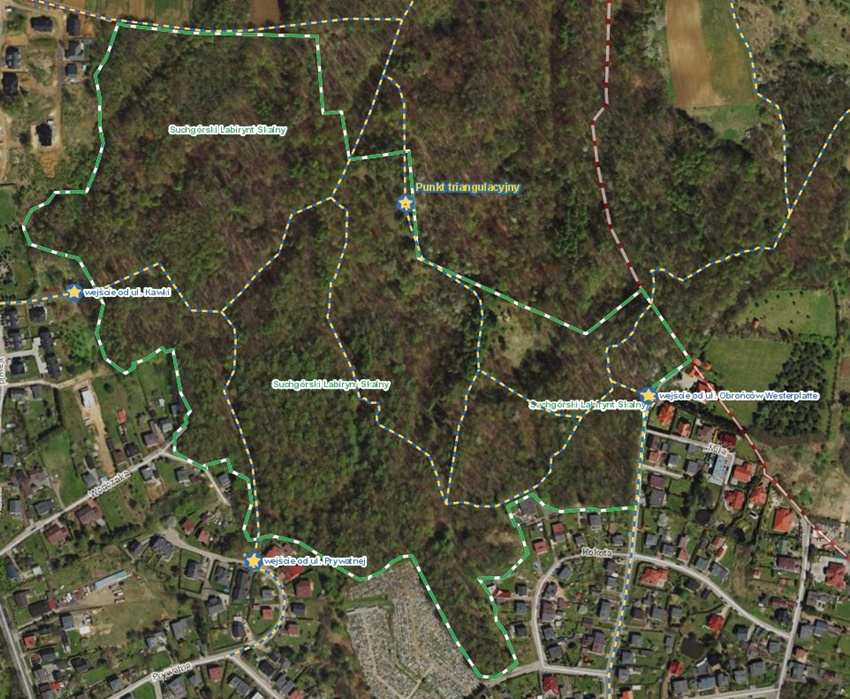 Zespół Przyrodniczo-Krajobrazowy Suchogórski Labirynt Skalny utworzony został decyzją Rady Miejskiej w Bytomiu 27 maja 2008 roku. Teren ten znajdujący się na pograniczu Bytomia i Tarnowskich Gór, sąsiaduje z Zespołem Przyrodniczo-Krajobrazowym Doły Piekarskie. Główne wejście do Suchogórskiego Labiryntu Skalnego znajduje się w Bytomiu-Suchej Górze od strony ul. Prywatnej, natomiast dojście do punktu triangulacyjnego możliwe jest od strony ul. Obrońców Westerplatte i Miłej.