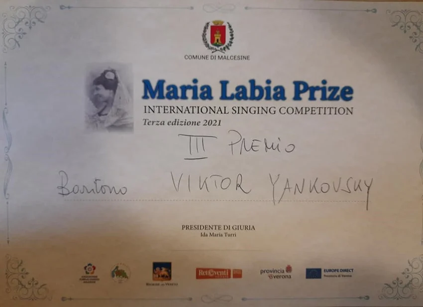 Viktor Yankovsky, stypendysta Prezydenta Miasta Bytomia na 2021 rok z zakresu twórczości artystycznej i upowszechniania kultury, zdobył III nagrodę podczas Międzynarodowego Konkursu Śpiewaków we włoskiej miejscowości Malcesine.