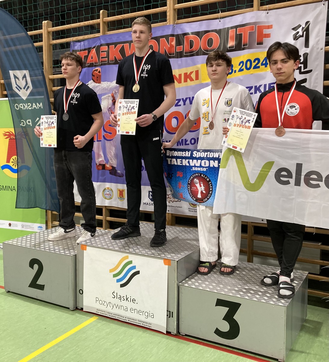 Po całodniowych zmaganiach zawodnicy Bytomskiego Sportowego Klubu Taekwon-do ,,Sonso” wrócili z trzema medalami. Kuba Kot srebro w konkurencji układów formalnych , Jakub Kozłowski brąz w konkurencji technik specjalnych, Maksymilian Kazieczko brąz w walkach +75kg.
