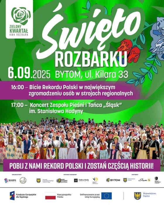 Do historycznej próby pobicia rekordu Polski w największym zgromadzeniu osób w strojach regionalnych został już tylko miesiąc. Bytomskie Centrum Sportów Wspinaczkowych i Siłowych Skarpa Bytom oraz Stowarzyszenie Miłośników Rozbarku zapraszają na drugą edycję wyjątkowego Święta Rozbarku, które odbędzie się w sobotę, 6 września, przy ul. Wojciecha Kilara 33.