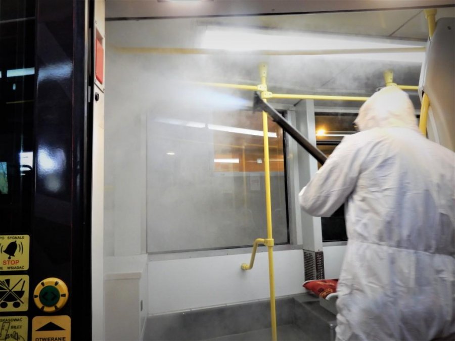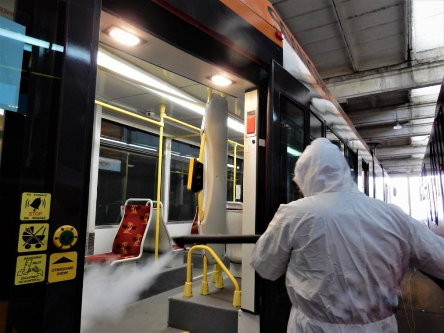 Dlatego od początku kwietnia, okresowo wagony dezynfekowane są dodatkowo za pomocą pary wodnej. Proces dwustopniowego odkażania wagonów realizowany jest średnio raz w tygodniu: najpierw pojazd czyszczony jest dokładnie parą wodną, a następnie kolejne osoby dezynfekują powierzchnie specjalistycznym środkiem wiruso- i bakteriobójczym.