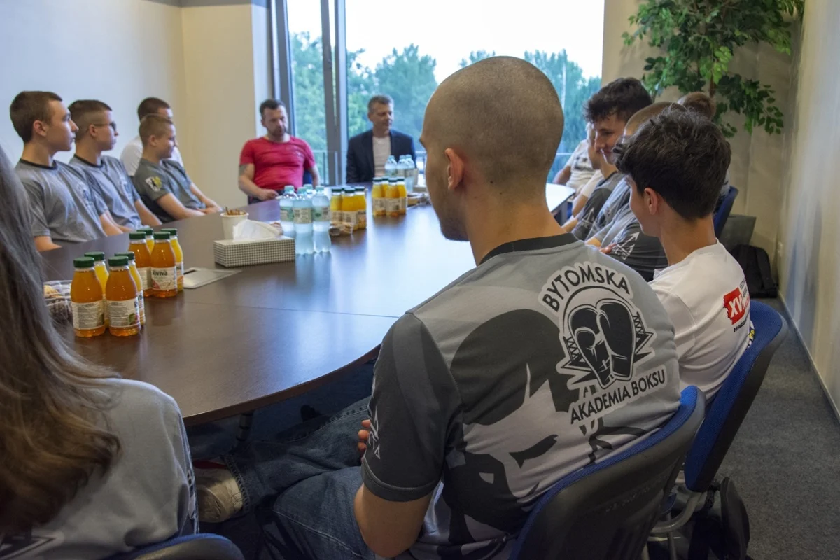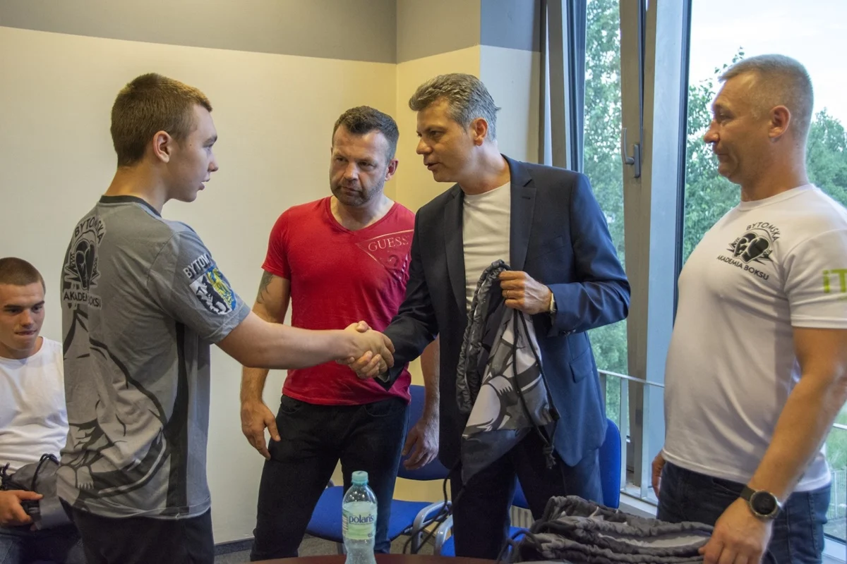 Prezydent Mariusz Wołosz pogratulował także trenerom, którzy pracują w Bytomskiej Akademii Boksu. O rozwój klubu dbają Sylwester Klasa, Arkadiusz Sikora, Rafał Sikora, Tomasz Kurzaj i Marian Łagocki. W spotkaniu uczestniczył także prezes BAB Damian Jonak.