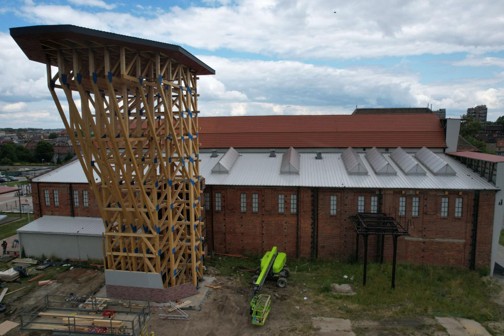 Budowa nowego obiektu sportowego ma się zakończyć jeszcze w wakacje, a ogromna powierzchnia wspinaczkowa już robi wrażenie na przejeżdżających ulicą Chorzowską.