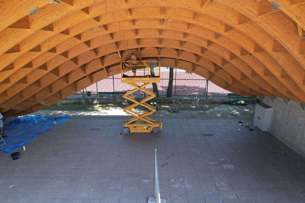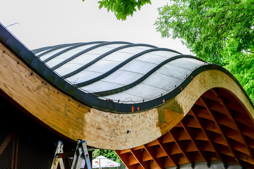 Chorzowska firma DTE Kamiński Widera Spółka wykonuje prace zabezpieczająco – renowacyjne elementów drewnianych i blacharskich w Amfiteatrze.