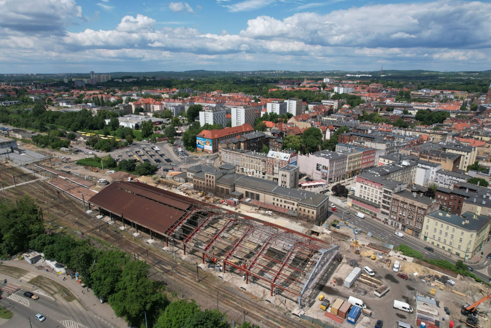 Stalowa konstrukcja hali peronowej prawie odkryta