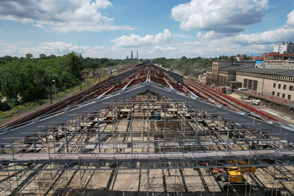 Prace związane z demontażem poszycia dachu z blachy o powierzchni 5600 mkw. powinny zakończyć się do końca sierpnia. Następnie po wypiaskowaniu i wzmocnieniu konstrukcji stalowej oraz fundamentów hali peronowej, wykonawca będzie mógł przystąpić do montażu dachu hali peronowej z blachy cynkowo-tytanowej wraz z przeszkleniami na świetliku i ścianach szczytowych hali.
