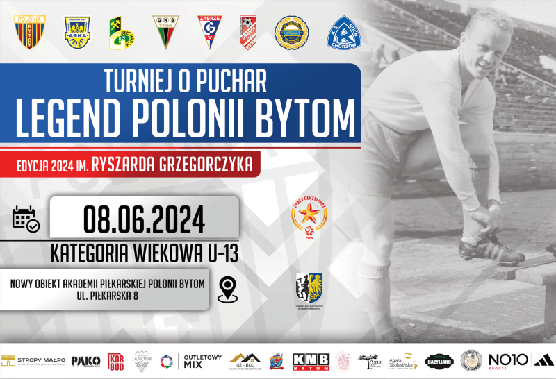 W najbliższą sobotę, 8 czerwca na nowym obiekcie przy ul. Piłkarskiej 8 odbędzie się Turniej o Puchar Legend Polonii Bytom, edycja 2024 im. Ryszarda Grzegorczyka. W mocno obsadzonych zawodach U-13 niebiesko-czerwoni będą rywalizować m.in. z Górnikiem Zabrze, Ruchem Chorzów i Arką Gdynia. Początek turnieju o godz. 9.