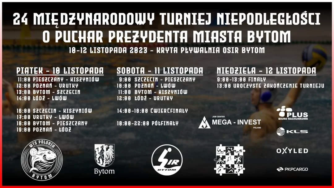 Podczas trzydniowego turnieju, w piątek i sobotę (10-11 listopada) rozgrywane będą spotkania w systemie „każdy z każdym”, zaś w niedzielę, 12 listopada odbędą się finałowe spotkania, które wyłonią zwycięzcę XXIV Międzynarodowego Turnieju Niepodległości o Puchar Prezydenta Miasta Bytomia w piłce wodnej. Finały zaplanowano od 9:00 do 13:00, zaś ceremonie zakończenia turnieju po godz. 13:00.