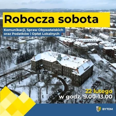 Urząd Miejski w Bytomiu wychodzi naprzeciw oczekiwaniom mieszkańców i cyklicznie otwiera się w soboty. Pierwsza robocza sobota w tym roku odbędzie się już 22 lutego w godzinach od 9:00 do 13:00. Dzięki temu mieszkańcy będą mogli wygodnie dopełnić niezbędnych formalności bez konieczności brania wolnego w tygodniu.