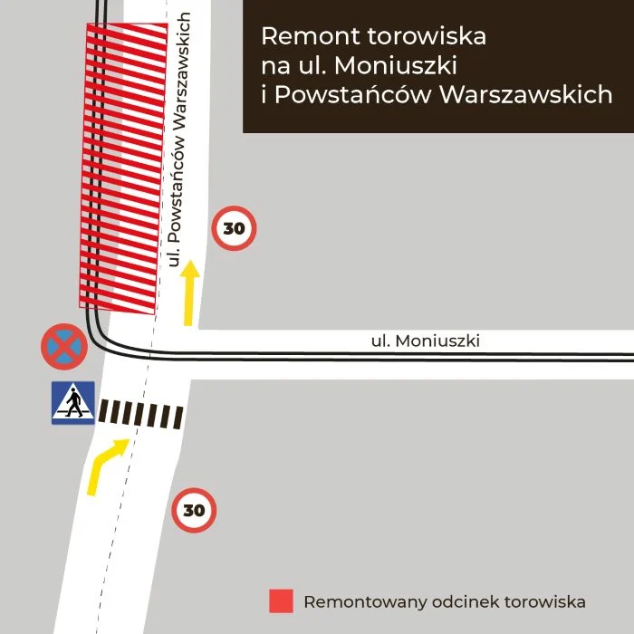 W związku z prowadzonymi robotami w Bytomiu, wyłączony zostanie lewy pas ruchu od skrzyżowania ul. Powstańców Warszawskich z ul. Moniuszki do posesji przy numerze 13. Na tym odcinku ruch będzie odbywał się jedynie prawym pasem, a maksymalna prędkość zostanie ograniczona do 30 km/h. Kierowcy powinni zachować szczególną ostrożność oraz stosować się do oznakowania tymczasowego.