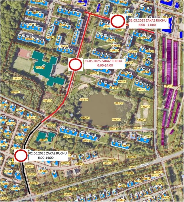 - poniedziałek, 2 czerwca zachodni odcinek ul. Nickla pomiędzy ul. Relaksową a ul. Frenzla – planowany czas zamknięcia 6:00-14:00.
