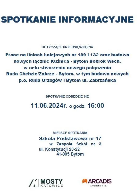 W spotkaniu, które 11 czerwca odbędzie się w Zespole Szkół Specjalnych nr 3 wezmą udział przedstawiciele wykonawcy projektu, specjaliści opracowujący dokumentację projektową z konsorcjum firm: Mosty Katowice Sp. z o.o. i Arcadis Sp. z o.o.