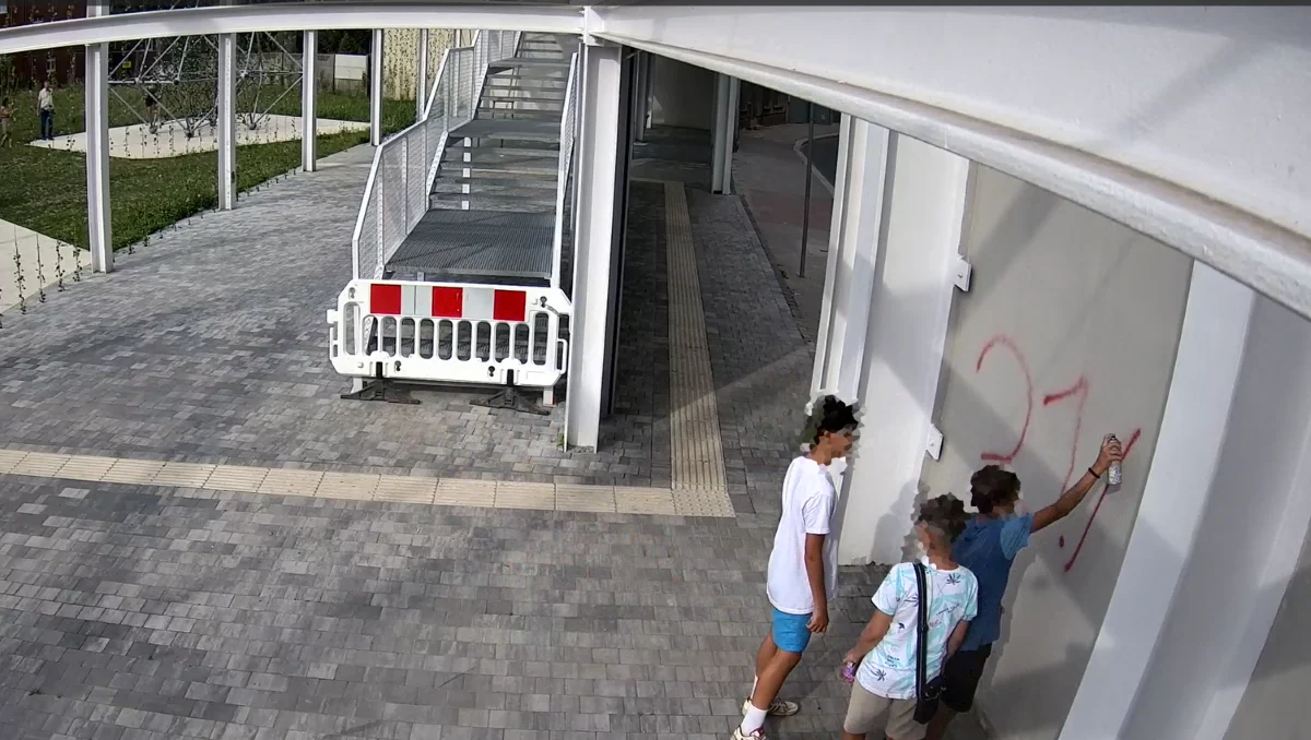 20 lipca, kamera monitoringu miejskiego zarejestrowała trzech nastolatków, którzy wpadli na pomysł, by popisać sprayem wewnętrzną stronę zachowanej elewacji przy ul. Kwietniewskiego 1.