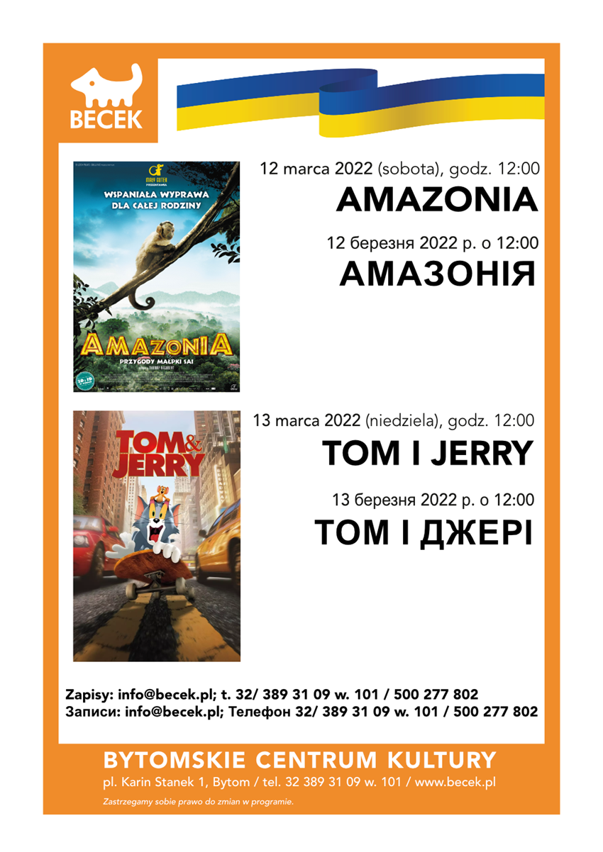 Центр Культури в Битомі відкриває свої кінозали для родин з України. Щиро запрошуємо на спеціально підготовані сеанси, під час яких покажемо два фільми. Сподіваємося, що в цей складний час ці фільми покажуть силу співпраці і взаємодопомоги. Хочемо, аби хоча б упродовж цього короткого часу перегляду фільмів українські родини могли розпружитися і відпочити.