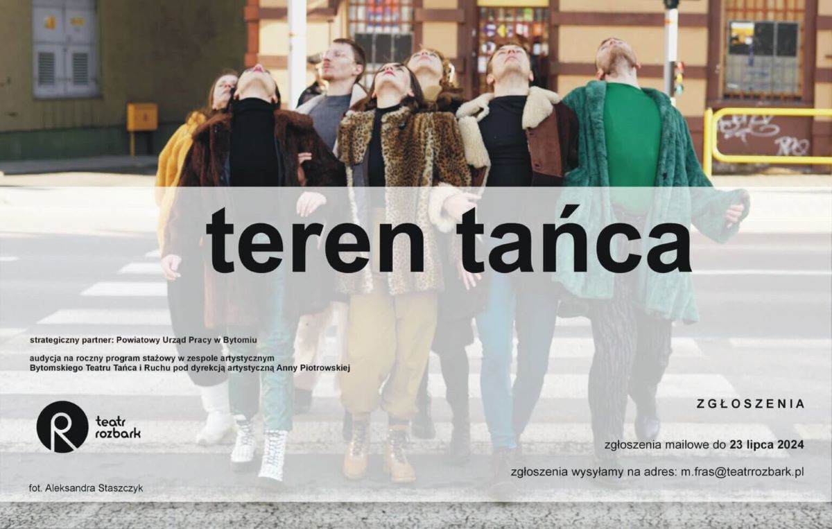 „Teren Tańca” to okazja do podniesienia swoich kwalifikacji oraz zdobycia cennego doświadczenia. Oferta kierowana jest do osób bezrobotnych, poniżej 30 roku życia, posiadających status absolwenta Akademii Sztuk Teatralnych Wydział Teatru Tańca w Bytomiu lub Ogólnokształcącej Szkoły Baletowej w Bytomiu (w zawodzie: aktor/aktorka, tancerz/tancerka).