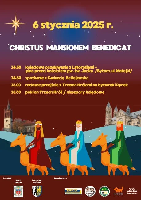 Przypomnijmy, że od 2011 roku dzień 6 stycznia, czyli Święto Objawienia Pańskiego potocznie zwane świętem Trzech Króli jest w Polsce dniem wolnym od pracy. Święto Objawienia Pańskiego, Kościół celebruje już od III wieku, a wydarzenie to jest zakończeniem cyklu uroczystości związanych z Bożym Narodzeniem. W chrześcijańskiej tradycji, Trzej Mędrcy ze Wschodu, znani jako Kacper, Melchior i Baltazar, podążali za Gwiazdą Betlejemską w kierunku miejsca narodzin Jezusa. Warto dodać, że Święto Trzech Króli obchodzone jest uroczyście w naszym mieście już od wielu lat, a mieszkańcy chętnie uczestniczą w tym wydarzeniu, które co roku swój finał ma na bytomskim Rynku.
