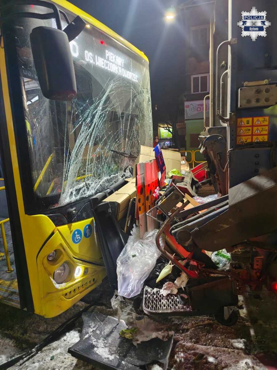 Wczoraj wieczorem na ulicy Witczaka w Bytomiu doszło do poważnego wypadku z udziałem trzech pojazdów. Kierujący autobusem miejskim najechał na pojazd marki Peugeot, a następnie na śmieciarkę. W wyniku tego zdarzenia cztery osoby wymagały pomocy medycznej.