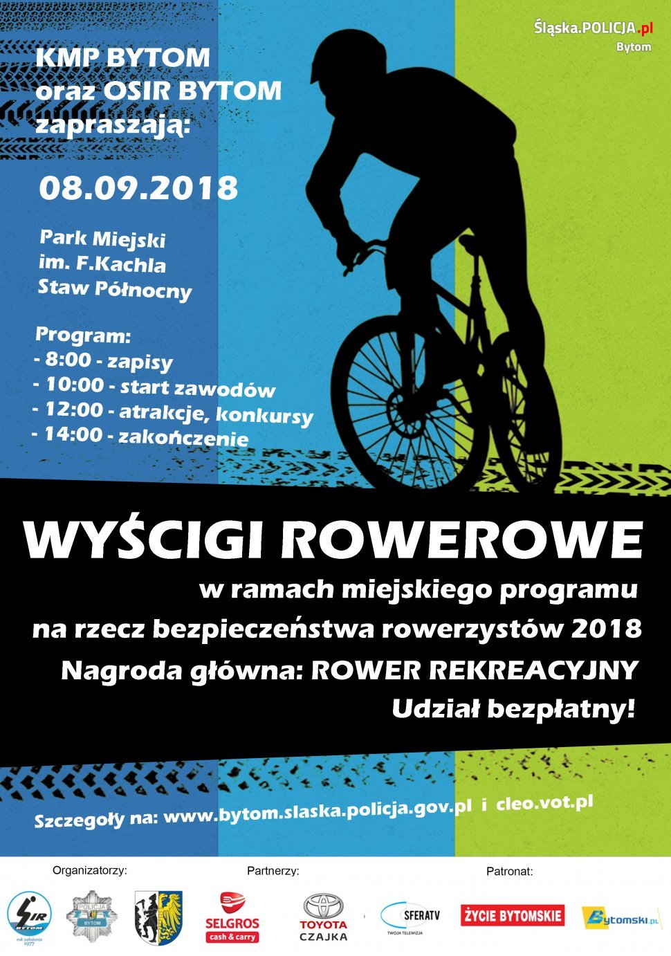 Podczas plenerowej imprezy w bytomskim parku miejskim im. Franciszka Kachla przy „Stawie Północnym” zostaną zorganizowane wyścigi rowerowe w 5 kategoriach wiekowych. Ponadto odbędzie się pokaz sprzętu policyjnego, oraz wiele konkursów i zabaw dla dzieci. Będzie można obejrzeć z bliska policyjne radiowozy i motory. Dla wszystkich uczestników przewidziano nagrody rzeczowe. Ponadto wśród uczestników wyścigów rowerowych zostaną rozlosowane nagrody specjalne, między innymi rower rekreacyjny. Początek imprezy o godzinie 8.00, natomiast start zawodów rozpocznie się o godzinie 10.00. Serdecznie zapraszamy do udziały wszystkich mieszkańców.