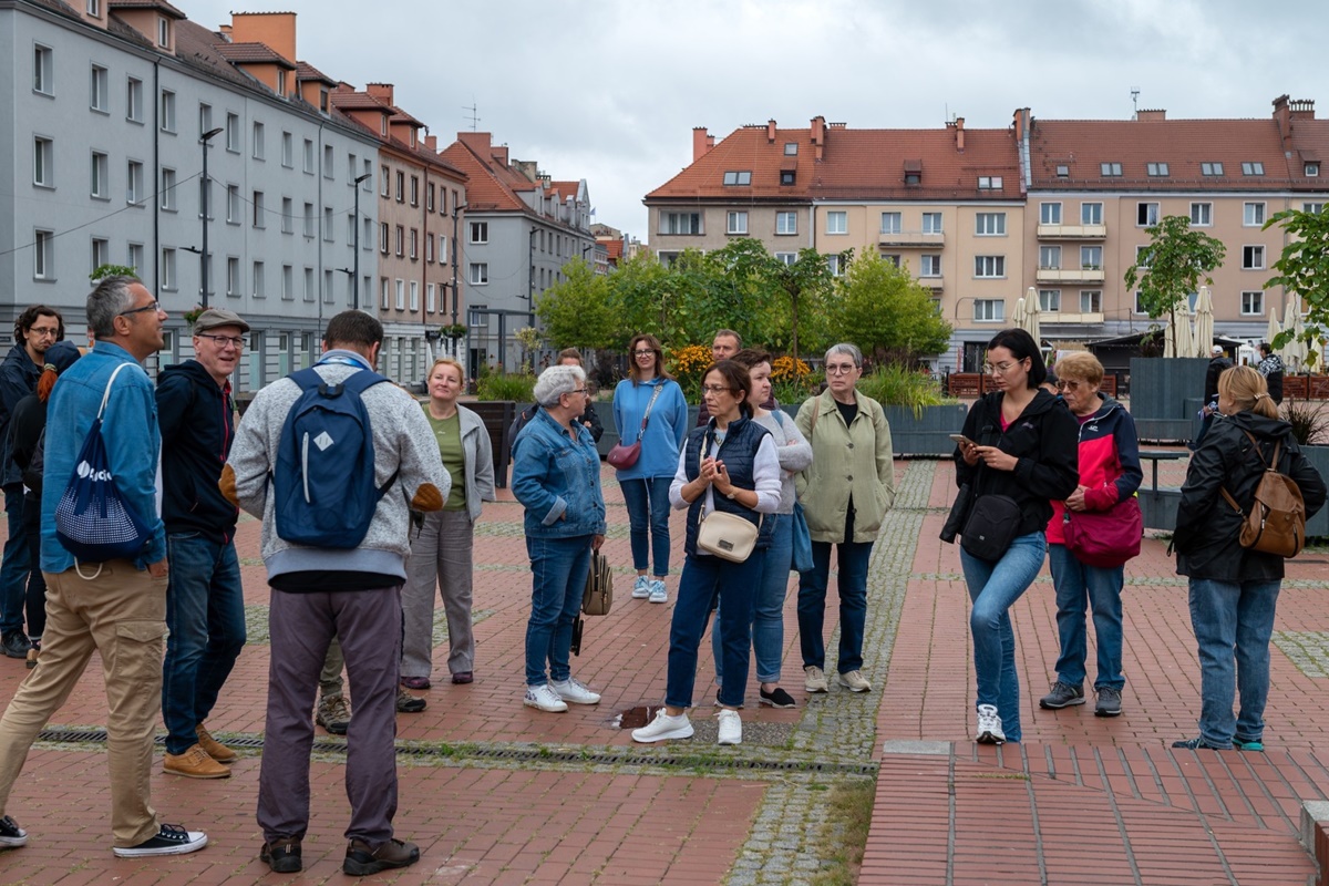 Kolejnym przystankiem podczas spaceru był pl. Grunwaldzki, gdzie w XIII wieku Kazimierz bytomski zbudował zamek, który niestety nie przetrwał do naszych czasów i nadal intryguje badaczy średniowiecznego Bytomia. Następnie turyści przeszli pod kościół pw. św. Ducha, gdzie uczestnicy spaceru poznali losy sprowadzonych do Bytomia bożogrobców przez księcia Kazimierza w 1299 roku, a także co udało się odkryć podczas badań archeologicznych przy kościele św. Ducha. W dalszej części spaceru miłośnicy Bytomia odwiedzili także kościół pw. św. Wojciecha, który lokował książę Władysław opolski około 1254 roku i wówczas był pod wezwaniem św. Mikołaja.