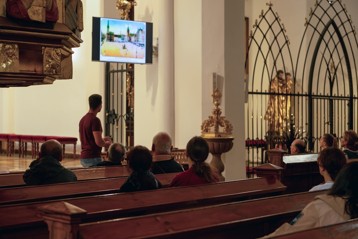 W kościele mariackim o historii świątyni opowiedział również Marcin Gad, organista w kościele pw. Wniebowzięcia Najświętszej Maryi Panny, który nie tylko przedstawił ciekawostki związane z jego dziejami, ale również zagrał dla uczestników spaceru dwa utwory na organach, w tym m.in. utwór nawiązując do znanej opery “Nabucco” Giuseppe Verdiego. Na zakończenie zwiedzania kościoła WNMP turyści mogli wejść schodami pamiętającymiczasy średniowiecza i zobaczyć z bliska organy, które każdego dnia rozbrzmiewają w najstarszym w Bytomiu kościele.