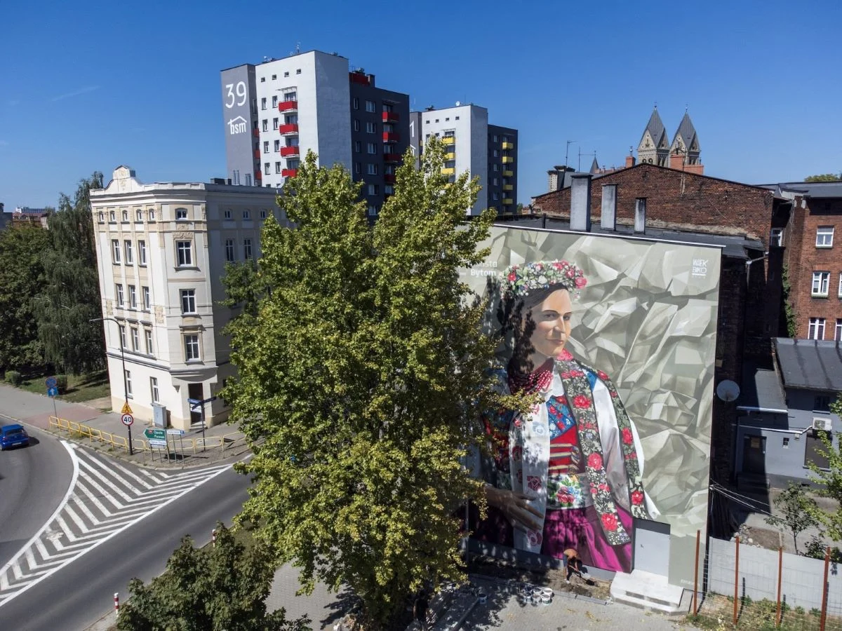 Zniknęły rusztowania ze ściany kamienicy przy ul. Witczaka 42. Streetartowcy Jakub Bitka i Łukasz Chwałek zakończyli malowanie wielkoformatowego portretu kobiety w stroju rozbarskim. Mural powstał w ramach ogłoszonego przez Urząd Miejski w Bytomiu ogólnopolskiego konkursu Zmalujmy coś w Bytomiu.