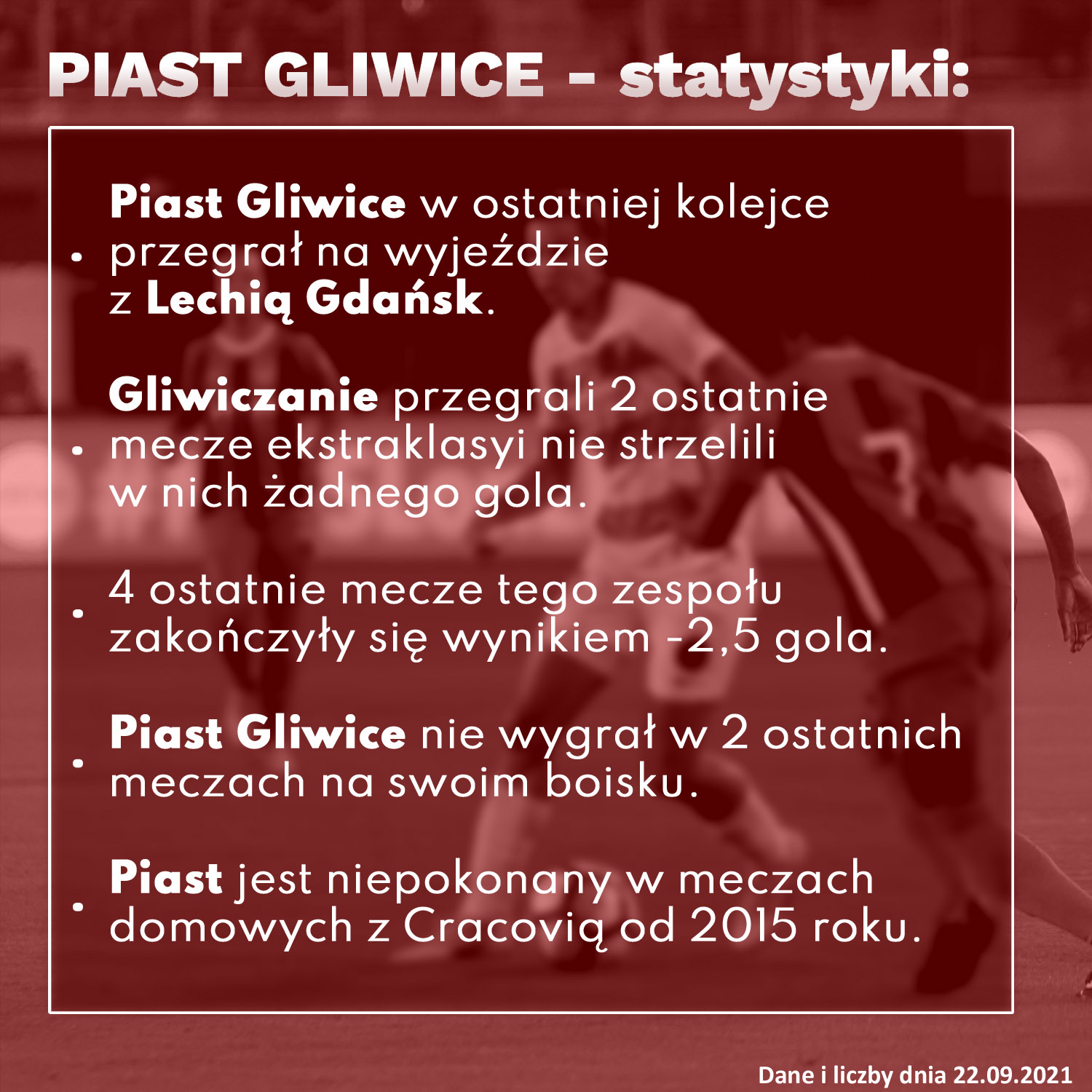 • Piast Gliwice nie wygrał w 2 ostatnich meczach na swoim boisku.